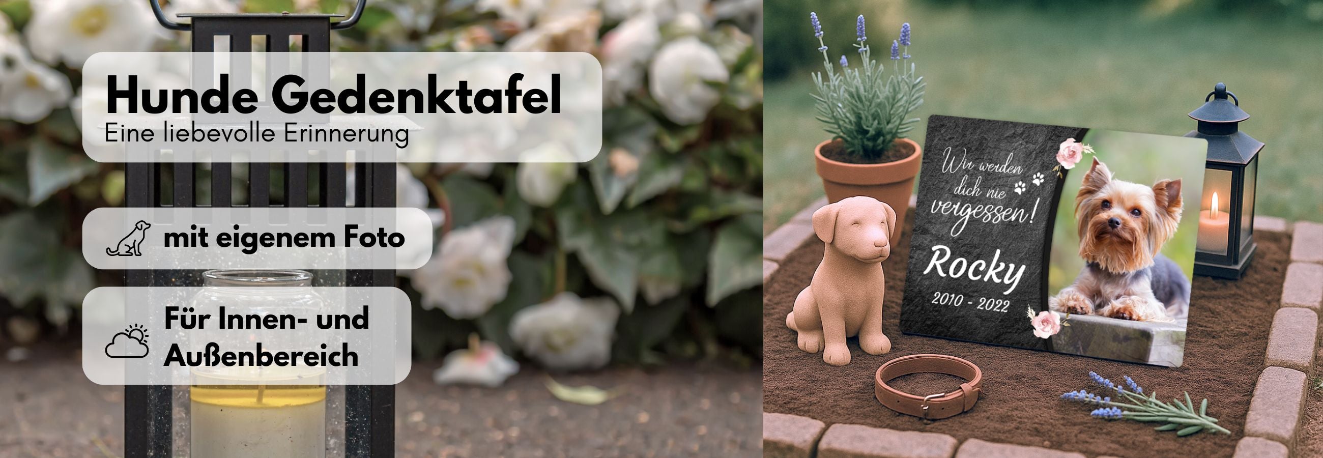 Hunde Gedenktafel mit Foto & Spruch (UV- & Wetterfest)