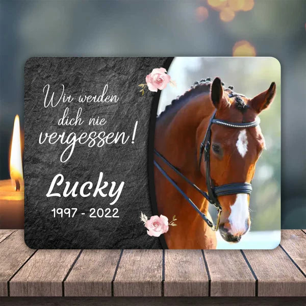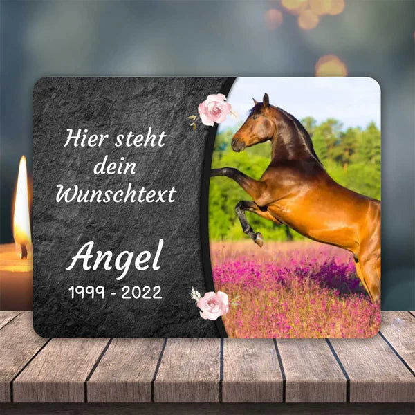 Einzigartig mit dem Foto von deinem Pferd und einem liebevollen Spruch. Gestalte ein einzigartiges und liebevolles Andenken.